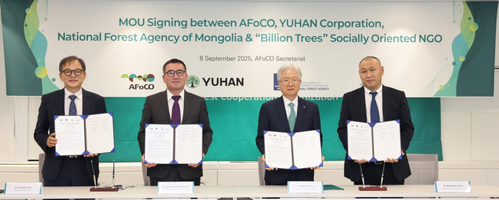 Yuhan Corporation: the Mongolian National Forest Agency, and Billion Trees: Signing of an MOU on forest restoration in Mongolia